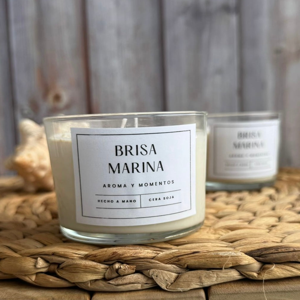Una vela que evoca la brisa del mar, con detalles decorativos en cera que te transportan a la orilla. Ideal para ambientes relajantes.