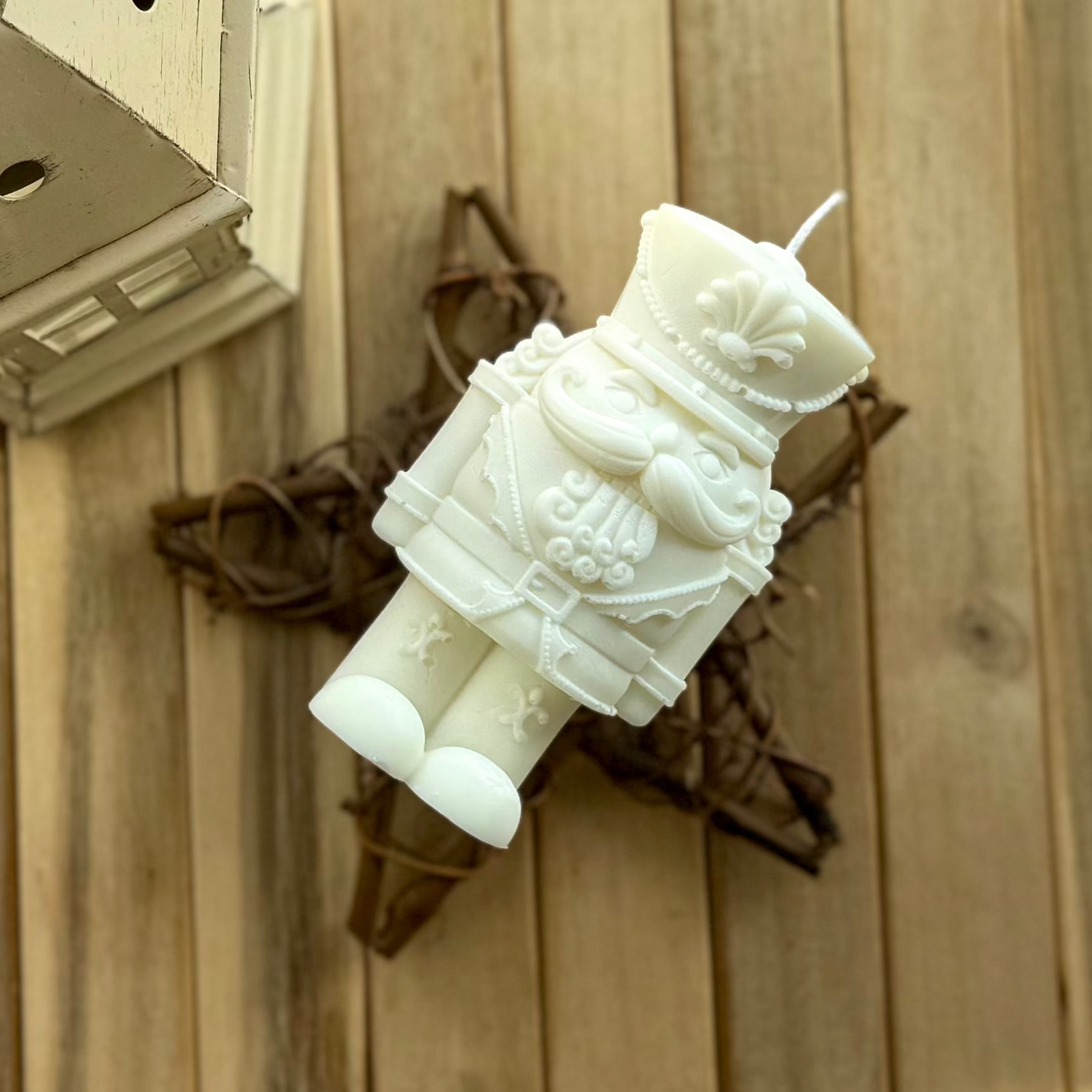 Vela artesanal con forma de guardia londinense, ideal para decoraciones temáticas o como pieza original y divertida.