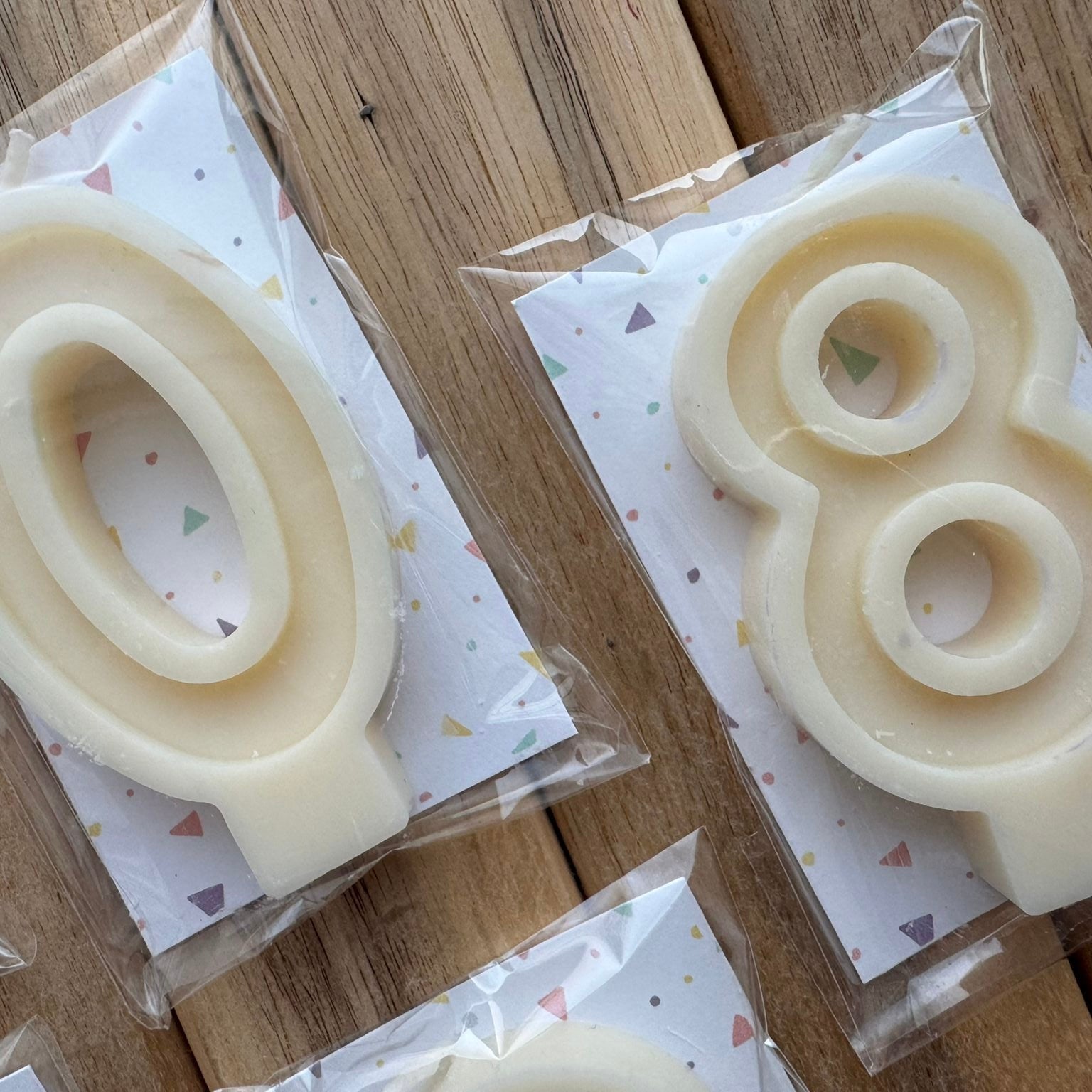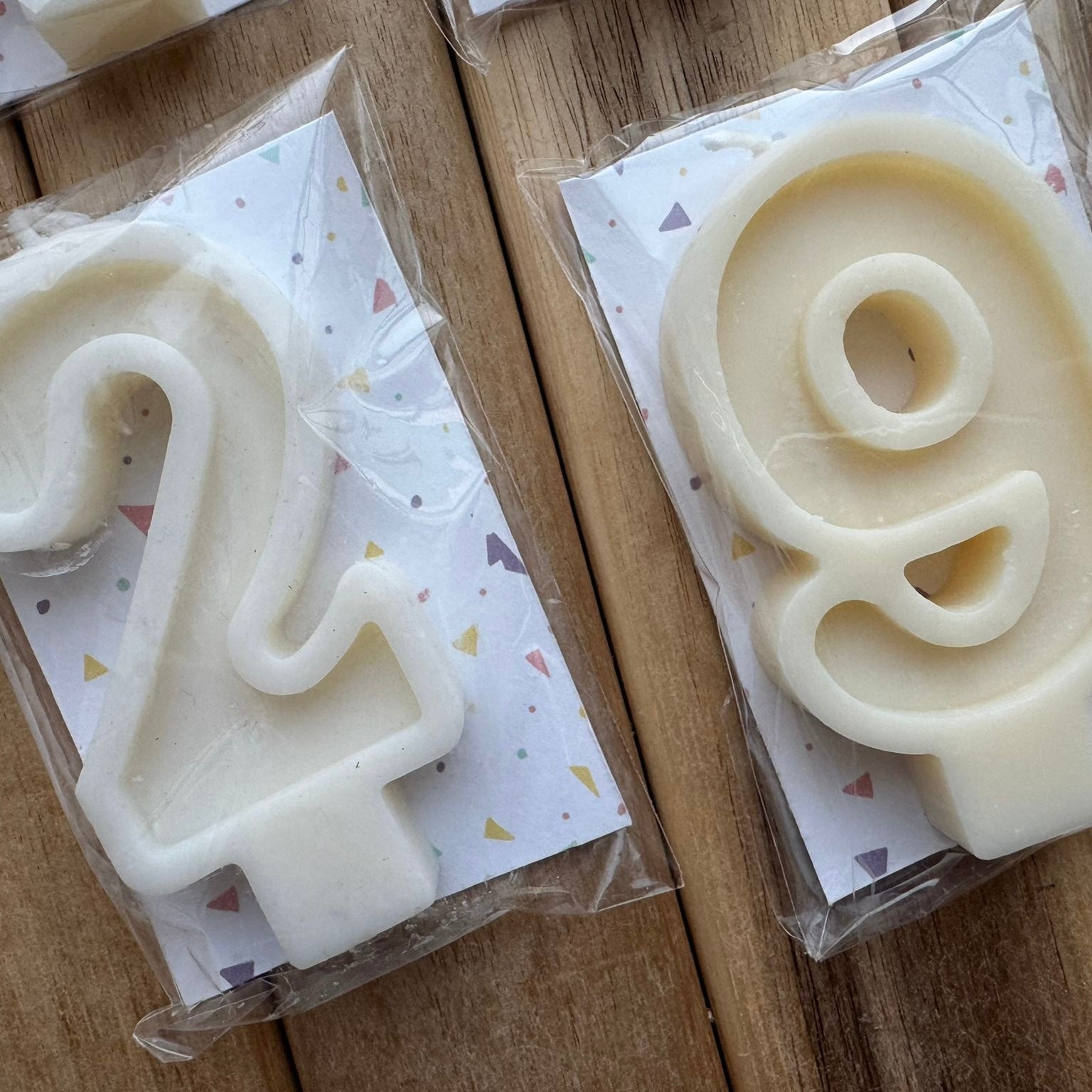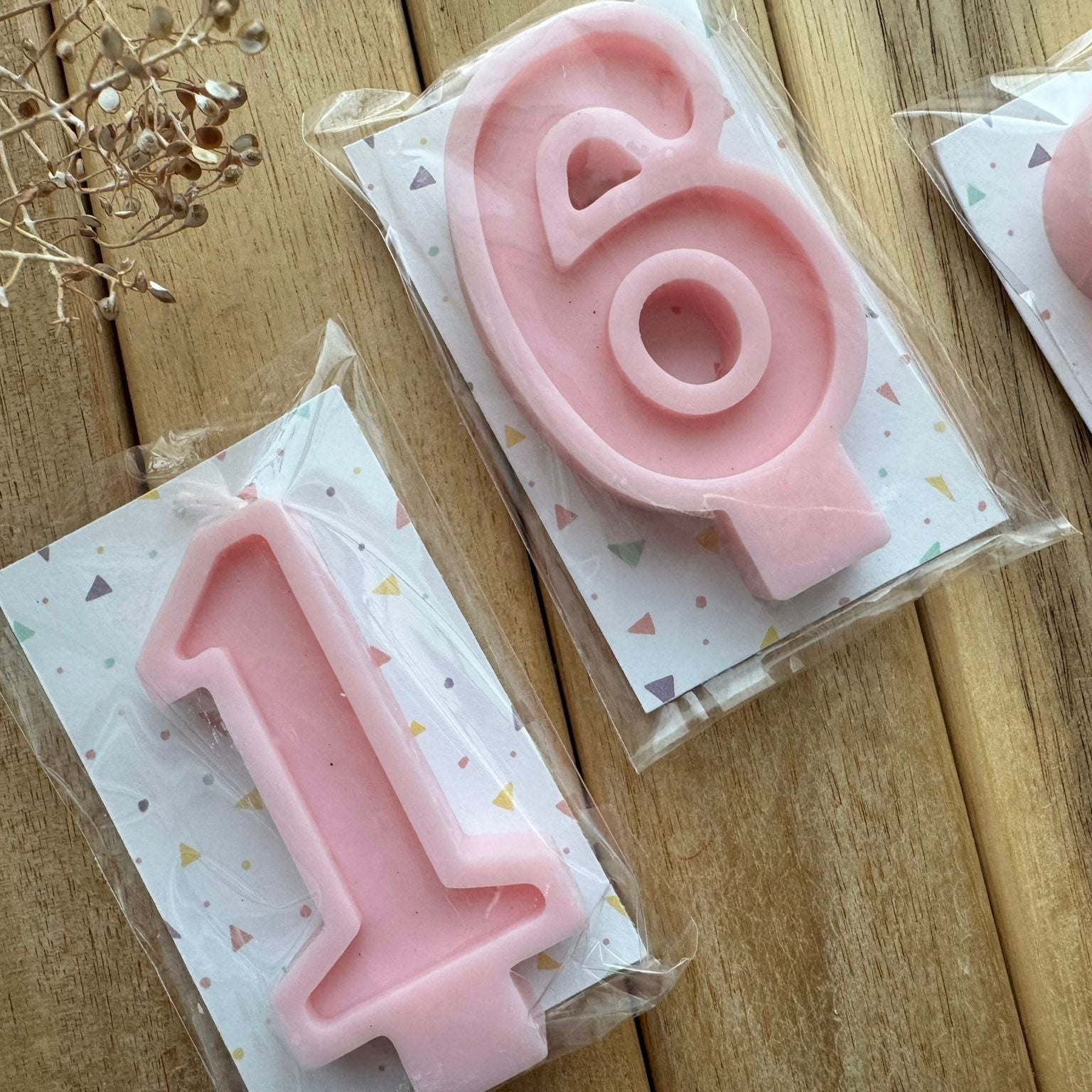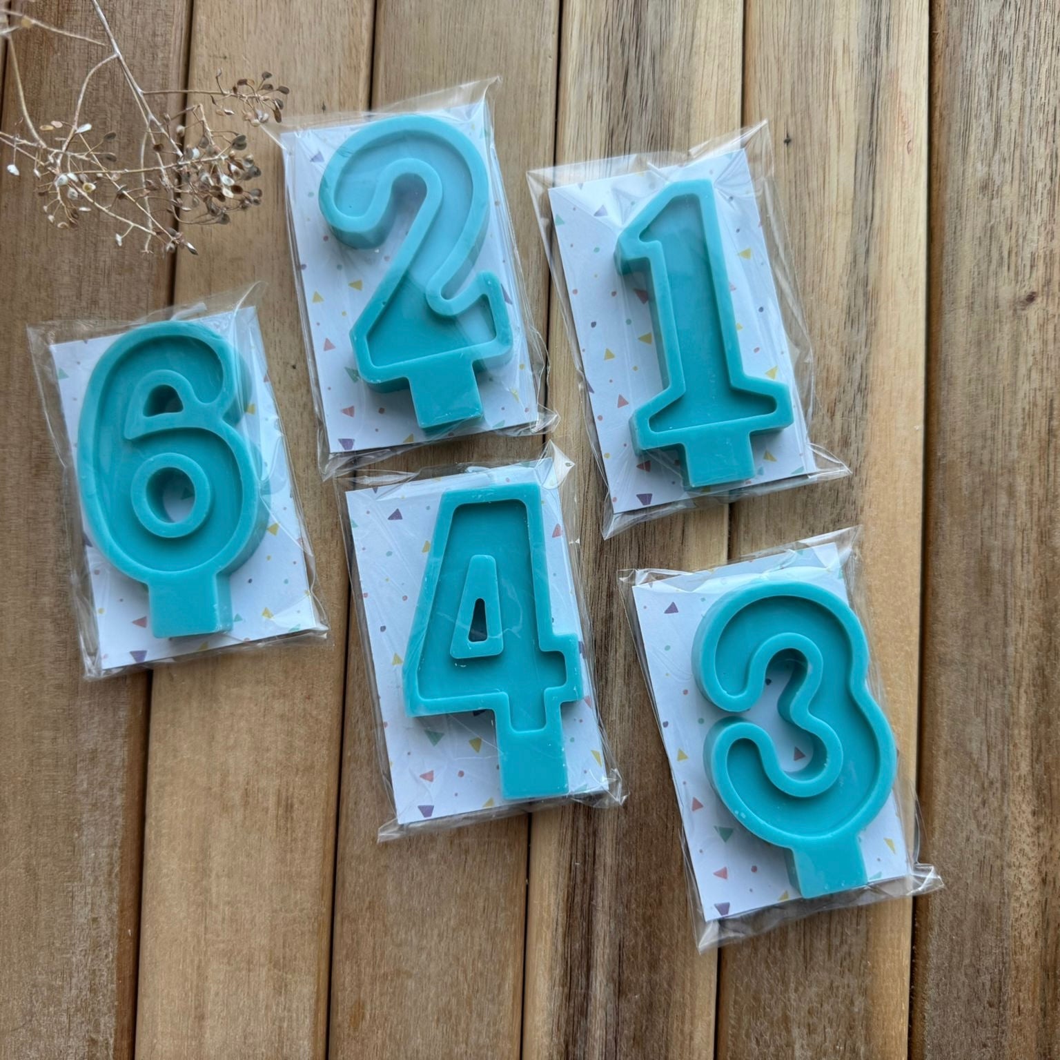 Velas de cumpleaños elaboradas a mano con cera de soja 100% vegetal. Diseñadas para dar un toque especial a tus celebraciones, aportando un acabado elegante y natural a tus tartas y postres.